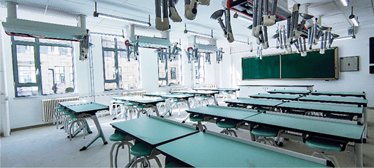 小學部采取走讀制(備有午休鋪位)與寄宿制相結合方式。初中部和高中部采取寄宿制。學生公寓4—6人一間,設有獨立盥洗室,每人均設有獨立收納柜。公共區域設有學生休息區,配有洗衣機、直飲水機。柔潤的空間布局、柔和的燈光色調、柔美的綠色植物,促進學生情感共鳴,增強學生歸屬感,營造一個溫馨的學生之家。